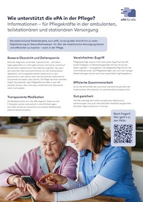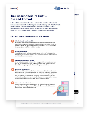 Mit diesen kompakten Materialien erhalten Sie alle notwendigen Informationen, um Ihre Patientinnen und Patienten umfassend und verständlich über die Vorteile und die Nutzung der ePA für alle aufzuklären.